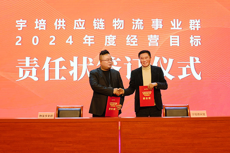 随后,董事长李士发代表宇培供应链管理集团分别与物流事业群和商流事业群签订2024年度经营目标责任状。