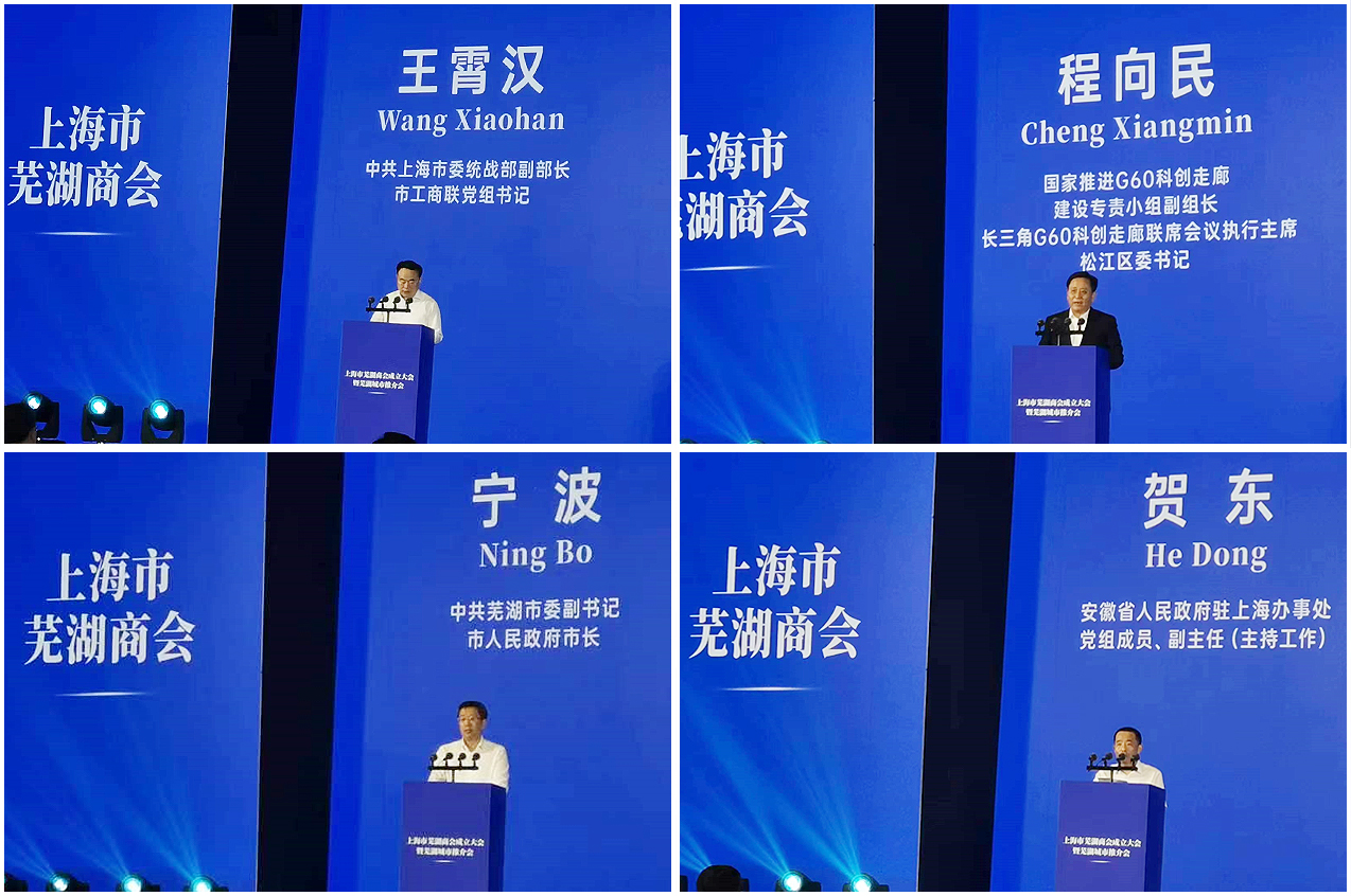 2023年7月1日,上海市芜湖商会成立大会暨芜湖城市推介大会在上海虹桥绿地铂瑞酒店举行。上海市委统战部副部长王霄汉、松江区委书记程向民、芜湖市人民政府市长宁波、安徽省驻沪办副主任(主持工作)贺东等领导出席大会并讲话。